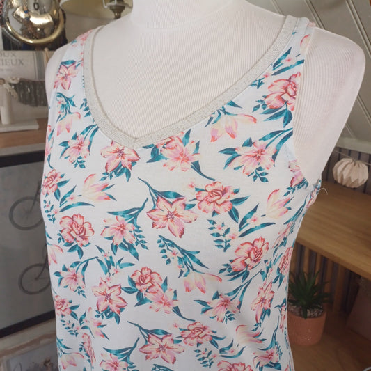 Débardeur blanc à motifs fleurs, Promod, taille 38